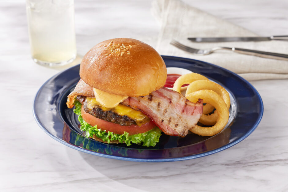 販売開始以来、不動の人気を誇り、アニヴェルセルカフェを象徴する一皿として愛され続けている看板メニューです。国産牛100%の肉厚なパティをふっくらジューシーに焼き上げ、香ばしいイベリコ豚のベーコン、とろけるチーズ、そして特製ソースを贅沢に重ねました。新緑が美しく、テラス席でのひとときが至福となるこれからの季節。表参道の柔らかな風を感じながら、圧倒的な満足感に満たされる「アニヴェルセルカフェのシグネチャーバーガー」をぜひご堪能ください。