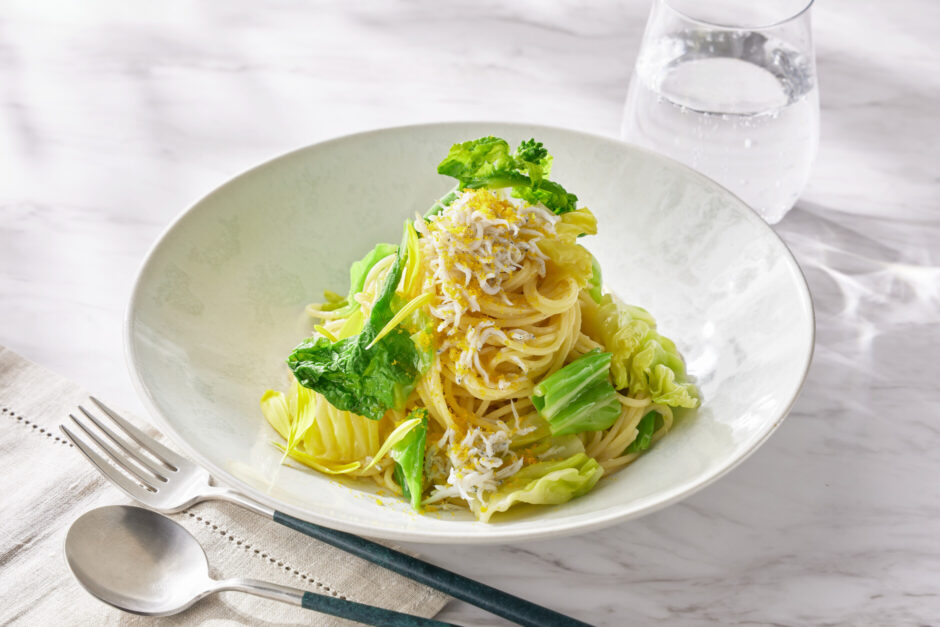 「春野菜としらすのパスタ カラスミのミモザ仕立て スパゲッティーニ」 2,200円(税込)