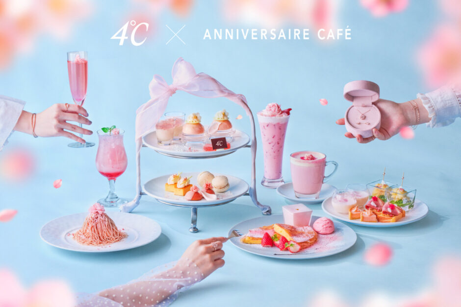 「アニヴェルセルカフェ みなとみらい横浜」は、ジュエリーブランド「4℃」とコラボレーションした期間限定のフェア『SAKURA Sweets Collection』を2026年2月6日(金)から4月30日(木)まで開催いたします。フェア期間中は、通常メニューに加え、4℃で毎年高い人気を誇る『SAKURA Collection』の2026年新作ジュエリーから着想を得て商品開発したアフタヌーンティーをはじめ、スイーツ3種、ドリンク4種を展開いたします。また、本フェアの開催を記念し、コラボレーションアフタヌーンティーをご予約のお客様へ、オリジナルジュエリーポーチを数量限定でご用意しております。卒業や入学、新生活の始まりなど、新しい門出が重なる春の季節に、さまざまな想いを分かち合う時間として、特別なコラボレーションフェアをお楽しみください。